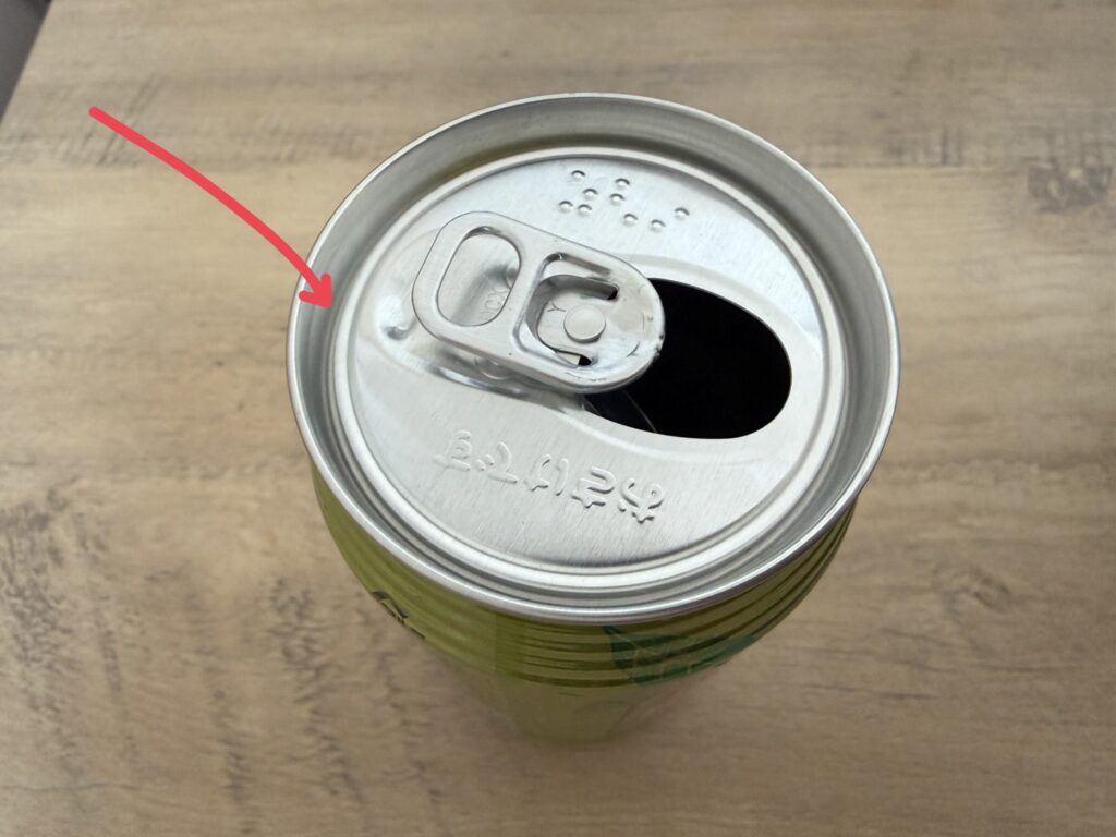 注意点として缶や手が濡れていると安定しにくくすべる可能性ありなので、しっかり乾かしてから行う。